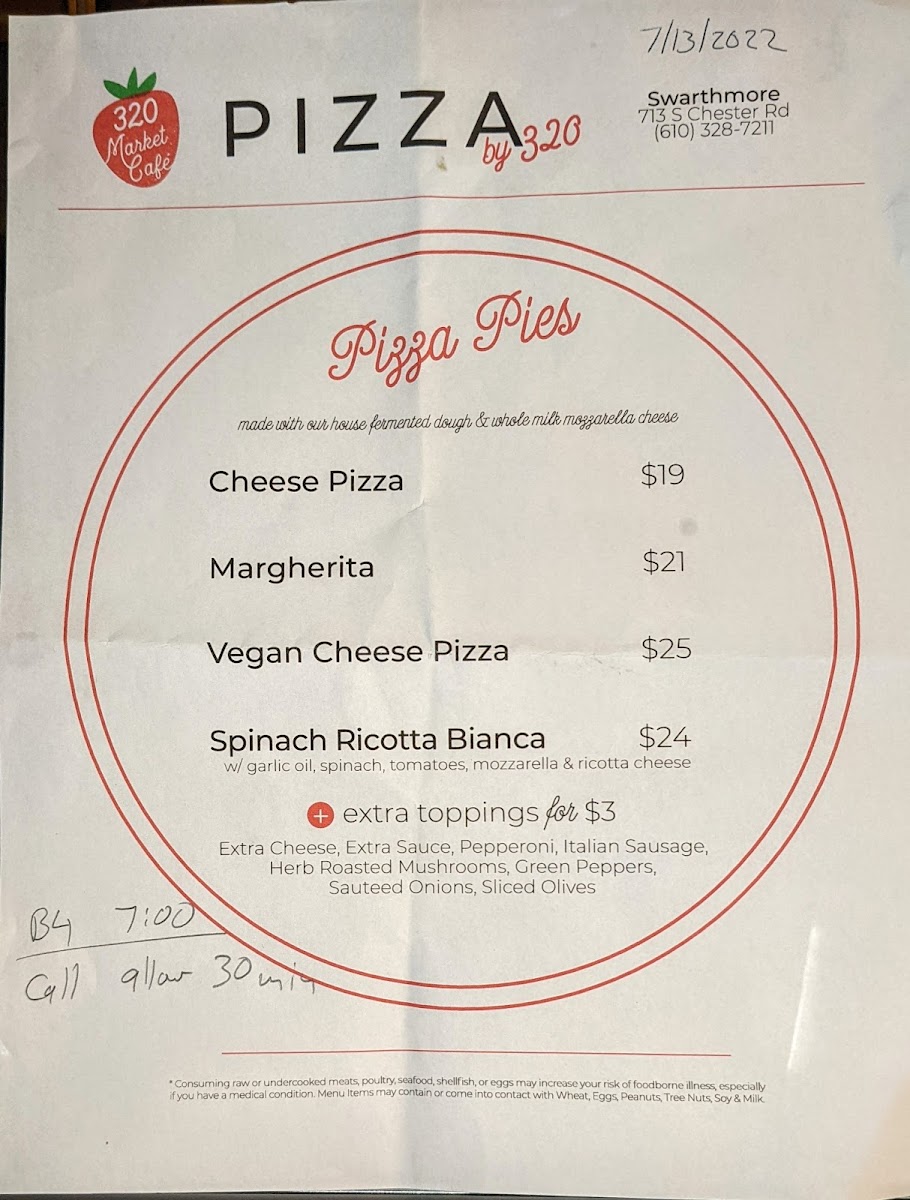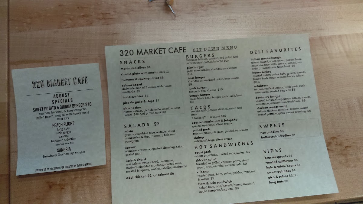 The 320 Market Cafe Menu